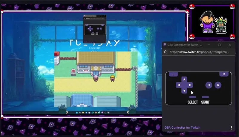 This app lets your Twitch chat control a Game Boy Advance emulator in real-time through a custom controller extension found right here. Once you register your channel and install and activate the extension, you can use it as a browser source in OBS for a fully interactive streaming experience.